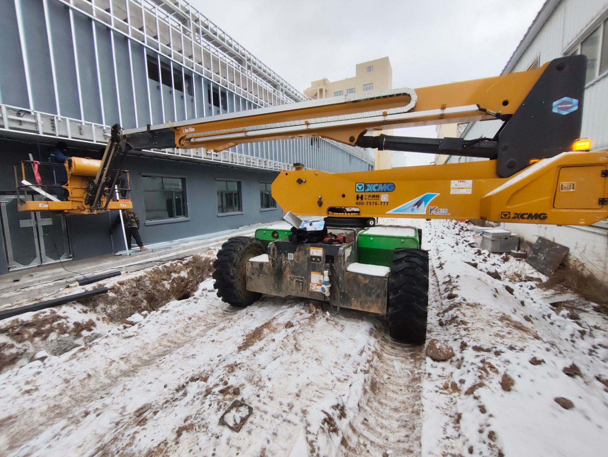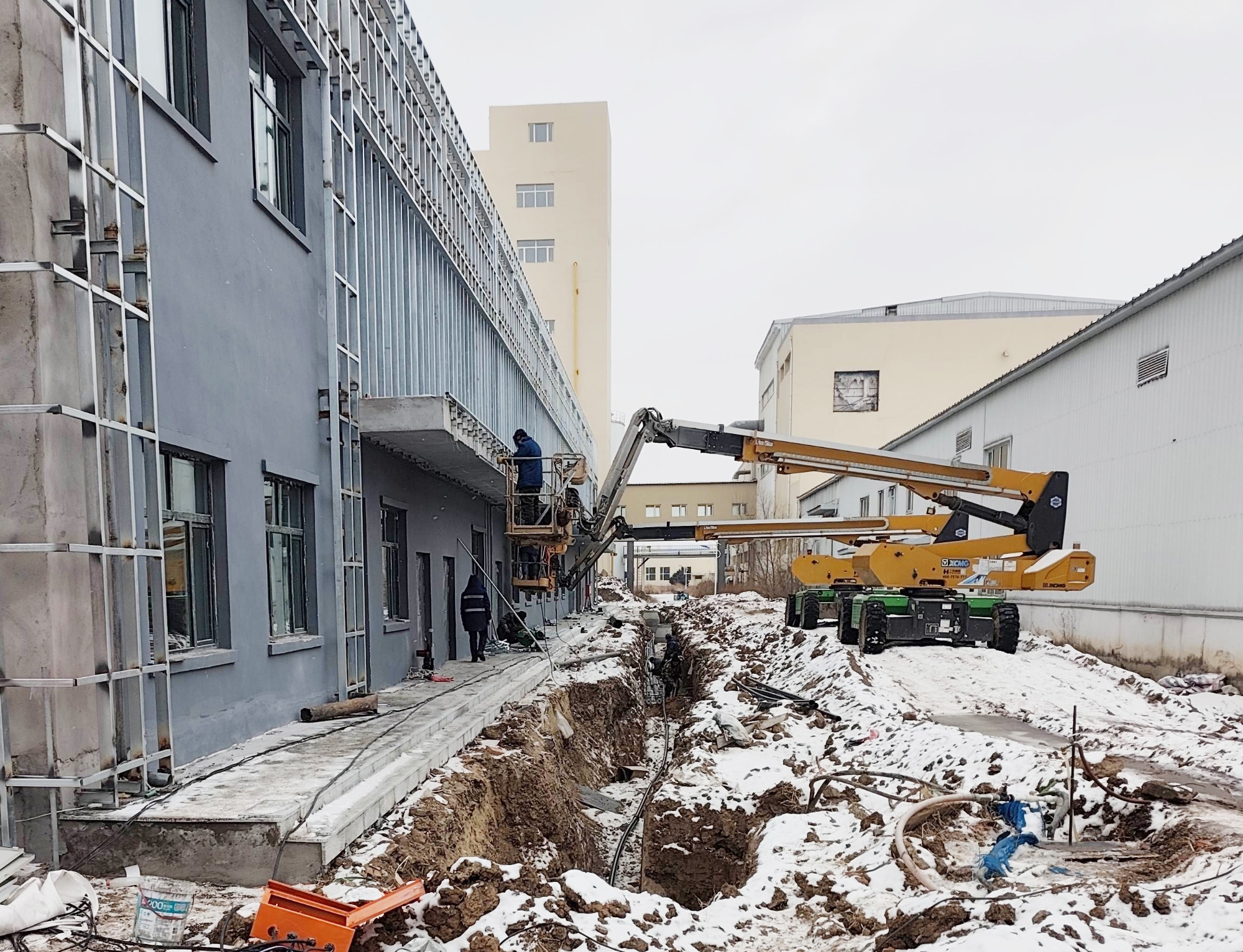 在黑龍江哈爾濱北大荒綠源冷鏈管理中心建設現(xiàn)場,冬日的冰雪覆蓋著施工場地,徐工高空作業(yè)平臺卻依舊高效運轉(zhuǎn),成為項目外立面施工的核心設備。