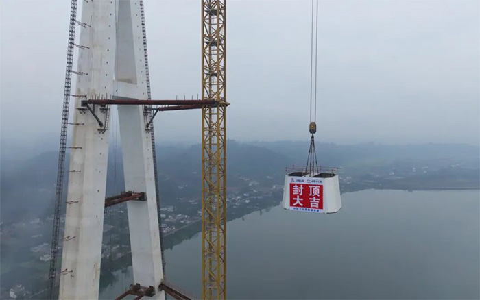 漢陽湖岷江特大橋主塔順利封頂