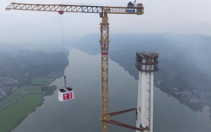 湖岷江特大橋主塔采用六邊形箱型截面,結(jié)構(gòu)復(fù)雜,高空作業(yè)安全風(fēng)險大,XGT2850-120S為大橋模塊化拼裝提供了關(guān)鍵支撐。