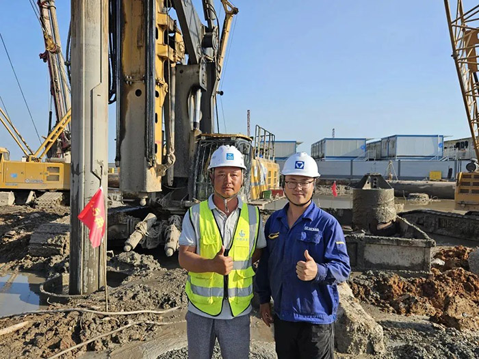 旋挖鉆機群不間斷施工的同時,徐工技術(shù)人員與服務(wù)團隊全天候走訪巡檢,有力保障項目工期節(jié)點。